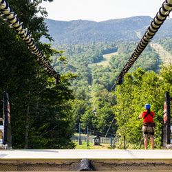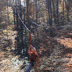 A gravity brake is essentially the absence of a zip line brake. Gravity brakes are zip lines designed so that the rider will not be able to reach the end. Usually, zip lines that use gravity brakes have a significant amount of slack so the end of the cable is uphill. The uphill portion of the zip line slows the rider until they change directions. Then they boomerang back and forth until they come to a stop at the sagging low point in the line.